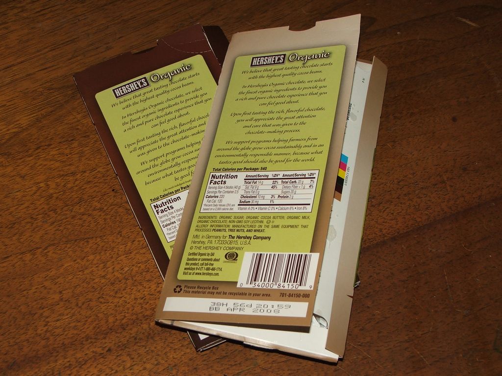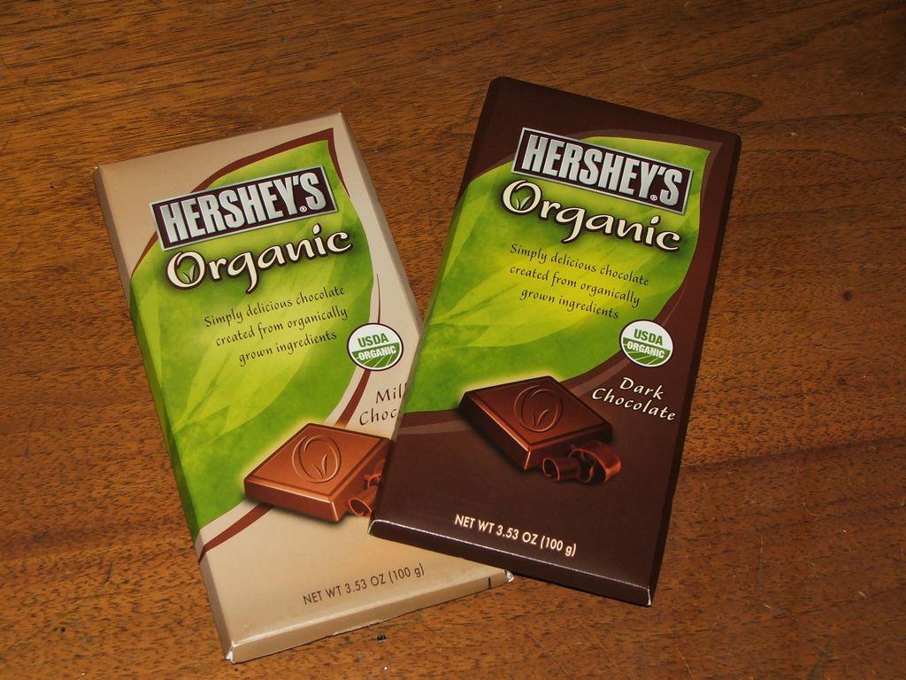 Anyway on my way to check out I came across a candy display and the Hershey’s Organic Chocolate bars caught my eye, of course being something new I had to grab them both, the Dark and Milk Chocolate varieties.