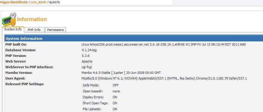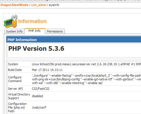 So after some time messing with the code I got access to the backend of the site and did some snooping around and I found my site is using PHP 5.3.6 !!!