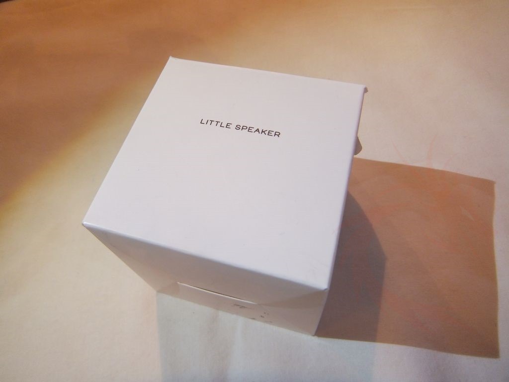The box is just plain white with the words ‘Little Speaker’ on the front