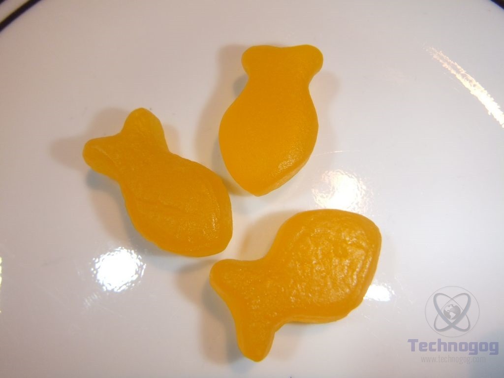 They’re Omega 3 or fish oil vitamins so they look like little fish. They’re orange flavored so they’re orange in color. The first thing I did was smell them when I opened the bottle and they do have a strong, almost chemical smell to them with a slight hint of citrus or orange.