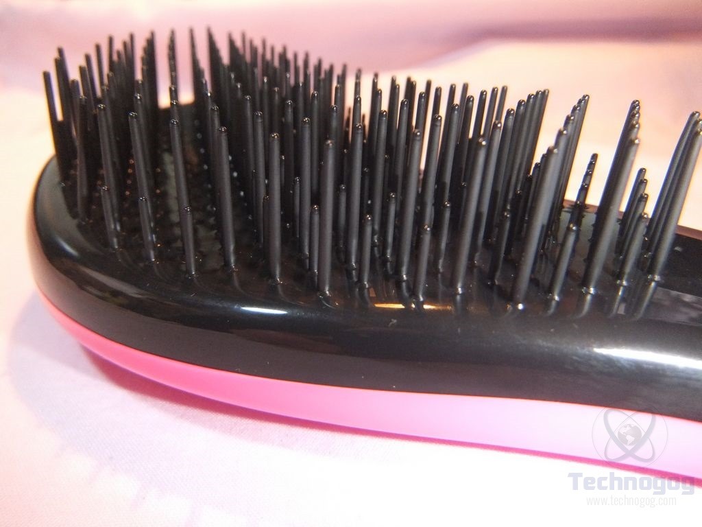 The bristles are pointy and when you first use it that can hurt your scalp so you do have get accustomed to using it. After a while you feel the pressure and it won’t hurt as much, the hey to using it is not to push and pull hard through your hair.