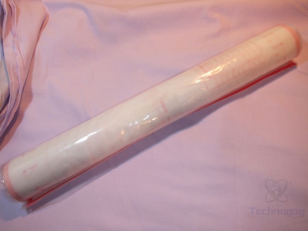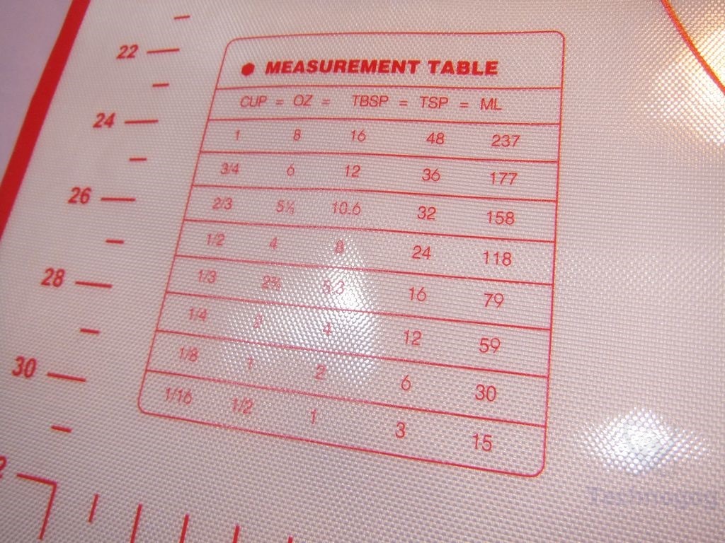 The mat is made of a non-stick silicone and it feels almost like rubber. It has a semi-gloss surface and it allows for easy cleanup. The mat is fairly large at slightly less than 24” x 16” so it offers ample surface room to roll out of pie crust of whatever other dough you might be working with. The center of the mat features circles with measurements on them so when you’re making a pie crust you can easily see how big to roll it out.