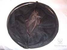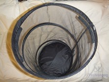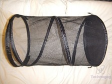 The hampers are a nylon mesh with a wire spiraling up through to the top and it’s sort of a spring. I measured them and they’re 25 inches high and about 16.5 inches across. The bottom is solid nylon while the sides are a mesh net that you can see through.