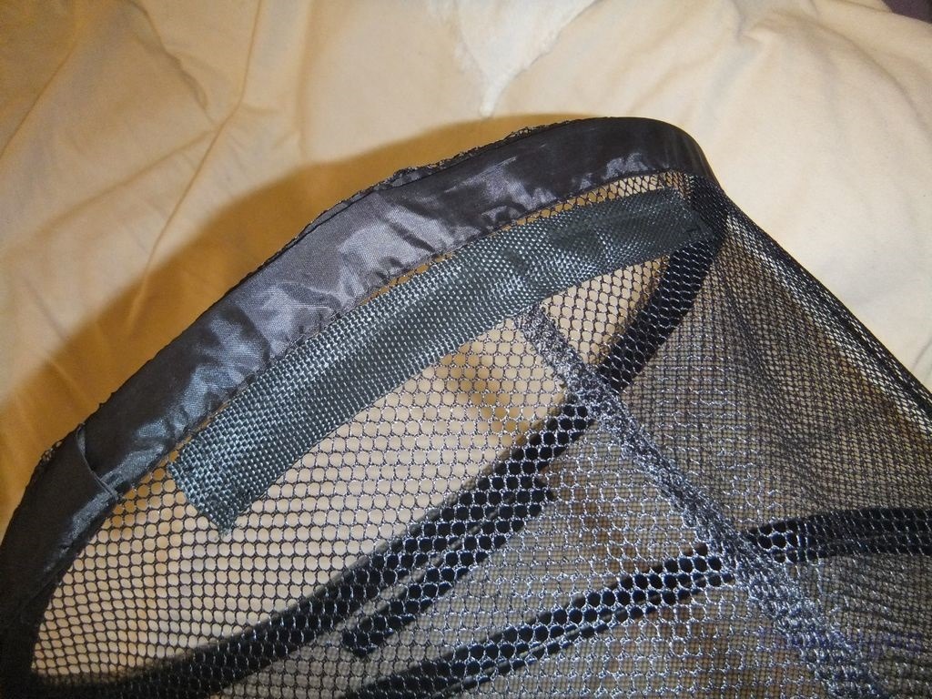 -Solid polyester bottom with strong spring wire frame and convenient carrying straps.