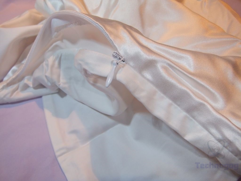 The bottom of the pillowcase is a soft cotton which works well I think. If you’ve ever used silk before you’ll know it’s kind of slippery and things tend to slide around but the cotton on the bottom keeps the pillow in place so it won’t slide. If you flip your pillow you can even sleep on the cotton side as it’s very soft, but then again that would defeat the point of the silk side?! Anyway, the point is, the cotton is soft and seems like of high quality.