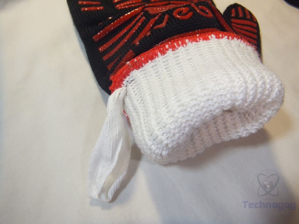 The gloves are actually two layers and you can feel the layers when you squeeze the gloves, the outer layer is the black with the rubber on it and then the inner layer which is white and it’s thicker than the black layer. Both gloves have straps coming from the inside of them at the cuffs so you can hang them up if you want to. The gloves feel very well made.