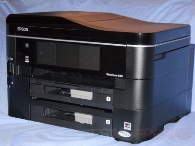Quote:Today for review I’ve got the latest  Epson printer, the WorkForce 840 that is an all-in-one style printer that does everything your home or small office might need it to do. The 840 is something for users that need a workhorse of a printer like this. The 840 features dual paper trays so it can handle a whopping 500 pages, and it has built-in double sided printing so you won’t waste paper on those less important documents, like draft or like coloring pages for your kids. The Epson WorkForce 840 is a worthy addition to the WorkForce line of printers, it certainly live up to the name.