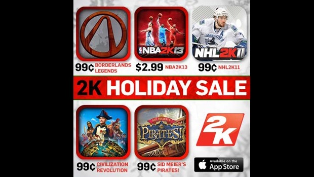 2K Games is having a big mobile sale to celebrate the holidays! A handful of our iOS mobile titles are on sale now through January 2nd, 2013! The list of games and their prices during the sale are below, and for more info you can check out the 2K blog here: http://www.2kgames.com/blog/big-2k-holiday-sale-for-mobile-games